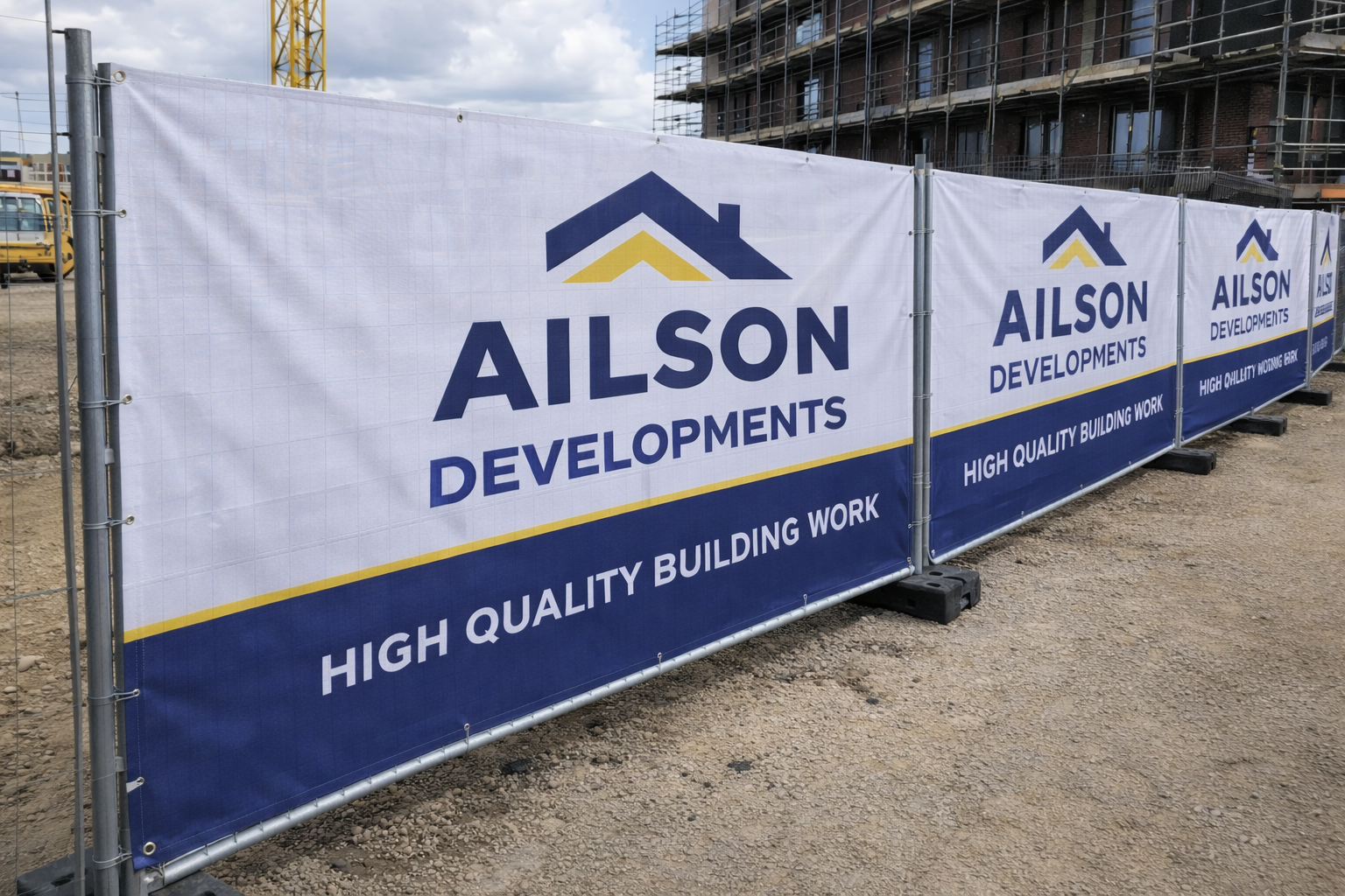 We supply durable construction banners across Oxfordshire, including mesh Heras fence banners and heavy-duty PVC scaffold banners. Designed for building sites, developments and commercial projects, our banners are built to withstand exposed environments while keeping your branding clear and professional.